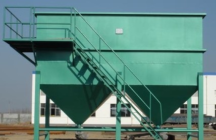 该斜板沉淀污水固体、悬浮物、污水经加混凝剂混凝反应后由设备上端进水口进入设备,经锥形反应池混凝形成矾花,逐渐沉降至设备污泥斗中(设备可连续间断排泥)形成排泥,有反应池中污泥沉降,清水上升至斜板(管)中,并进 一步沉降污水中的污泥,清水上升至溢流槽后出水。